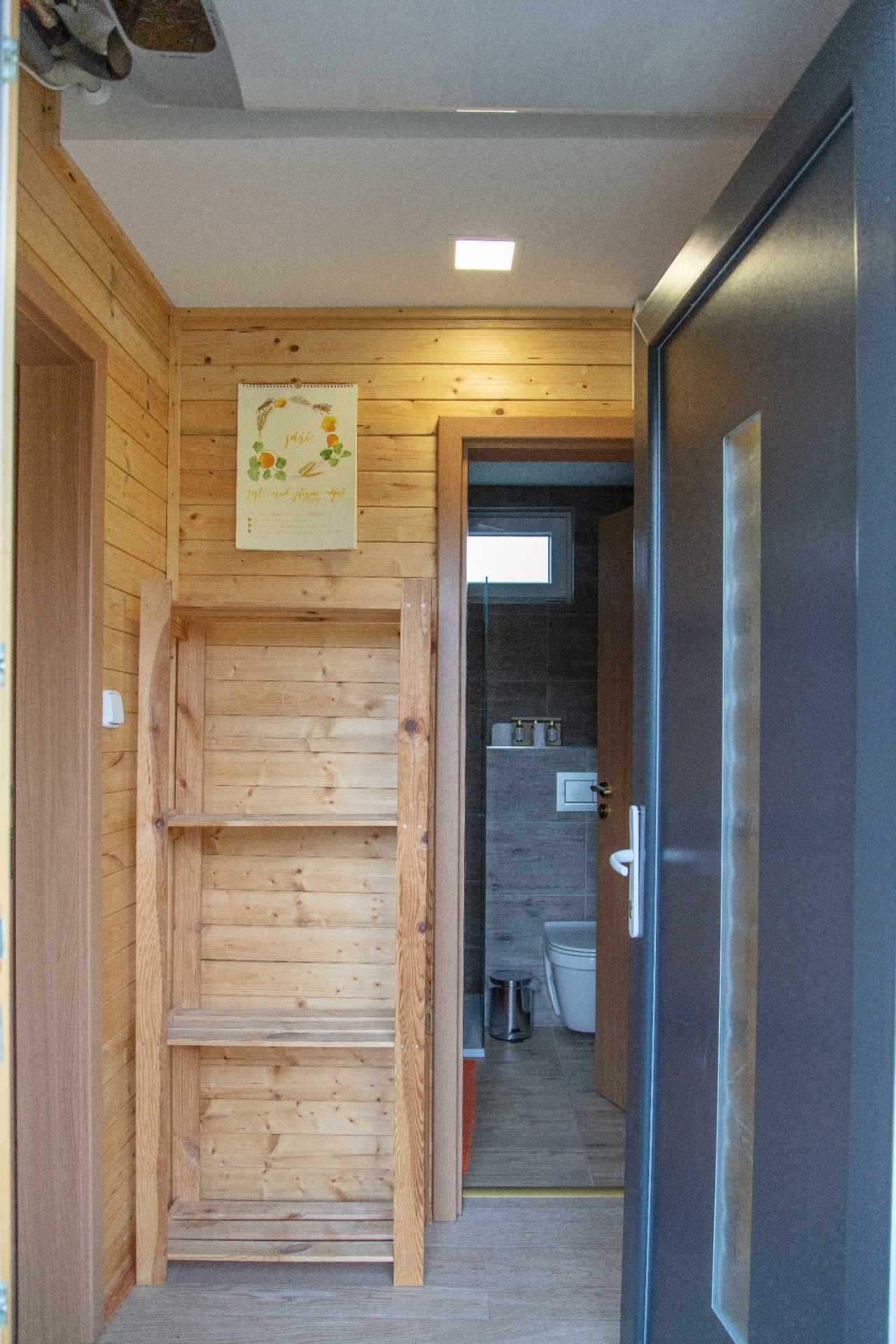 Do dobře utěsněné dřevostavby je dobré nezasahovat, aby se neporušila těsnost stavby. Náš Tiny House obsahuje: kompletní elektroinstalaci, přípojku na vodu a odpad, v ceně je přímotop, chytře umístněný bojler - schovaný nahoře, aby nezabíral prostor. Navíc máme přípravu na klimatizaci/vytápění, rekuperaci a žaluzie.